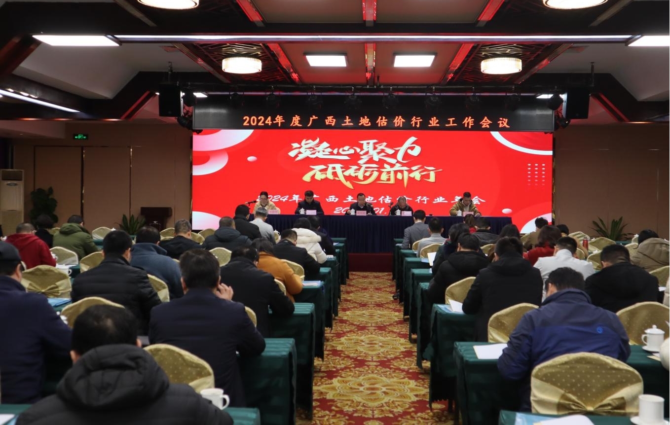 2024年1月30日下午,广西2024年度土地估价行业工作会议在南宁市召开。协会领导及全区土地估价机构负责人、代表共102人参加了会议。会议由蓝继松副会长主持。会议听取了年度工作报告及财务状况报告,并举行座谈交流会。