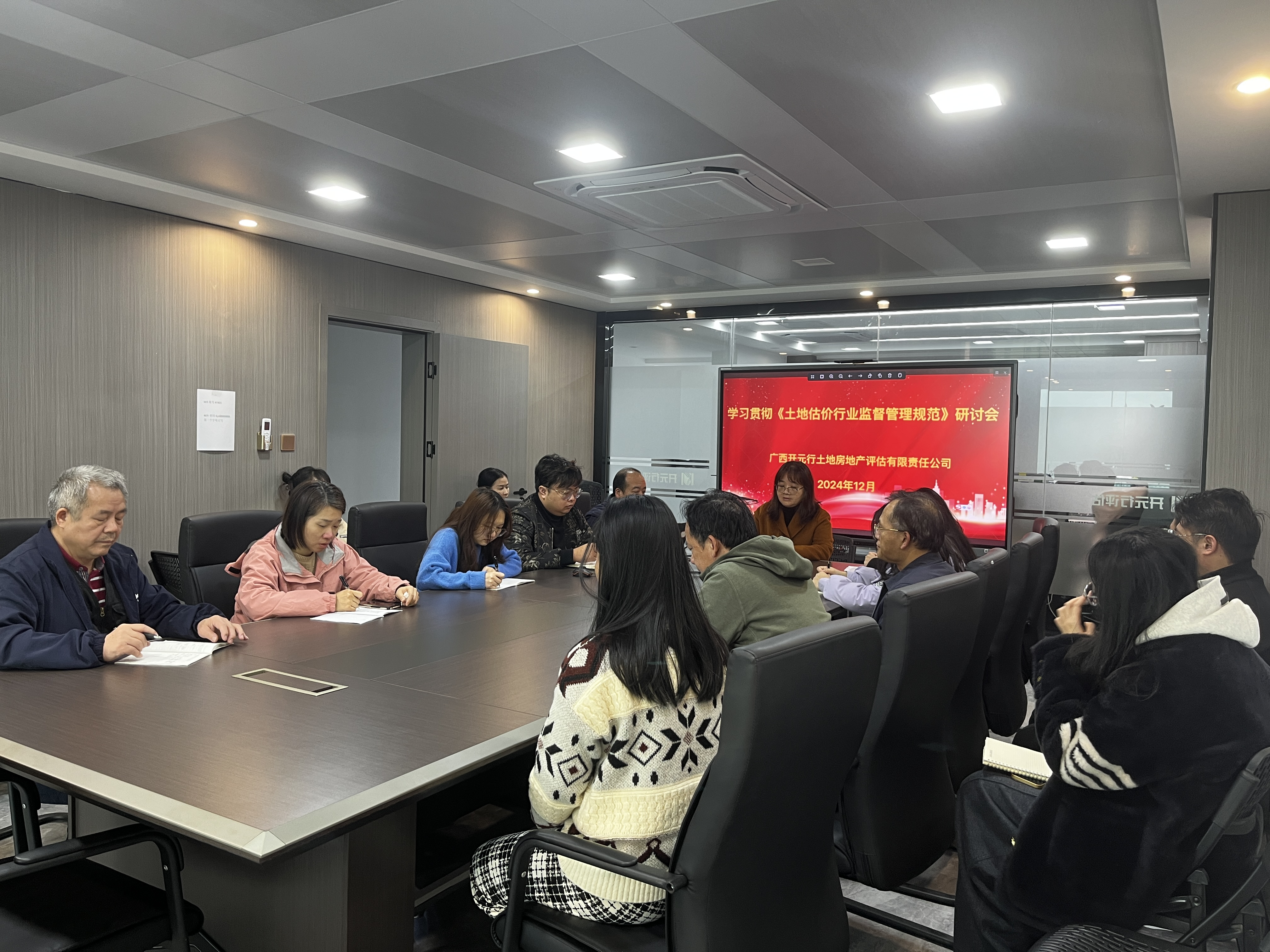 为深入贯彻学习《自然资源部办公厅关于印发<土地估价行业监督管理规范>的通知》(自然资办发〔2024〕54号)(以下简称《规范》)文件精神,2024年12月27日,广西开元行土地房地产评估有限责任公司组织公司全体员工组织业务骨干学习《土地估价行业监督管理规范》,并进行研讨。本次学习研讨意在领会《规范》的核心要义,并切实将其落实到日常工作中。