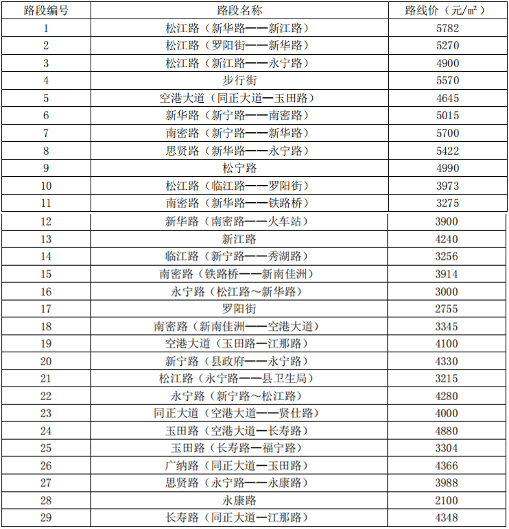 扶绥县城区主要道路商服路线价表